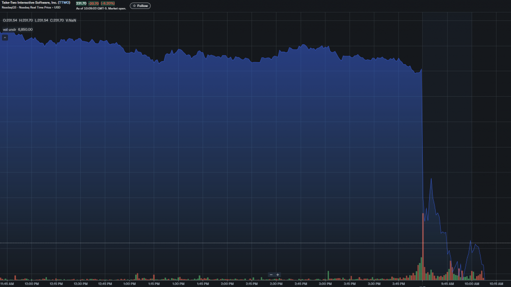 When trading began Take-Two’s share price tumbled around 9%; from $252 to $230. It was able to recover a couple of percent and sustain it. It was just last quarter when Take-Two reiterated confidence in GTA VI in May 2026.