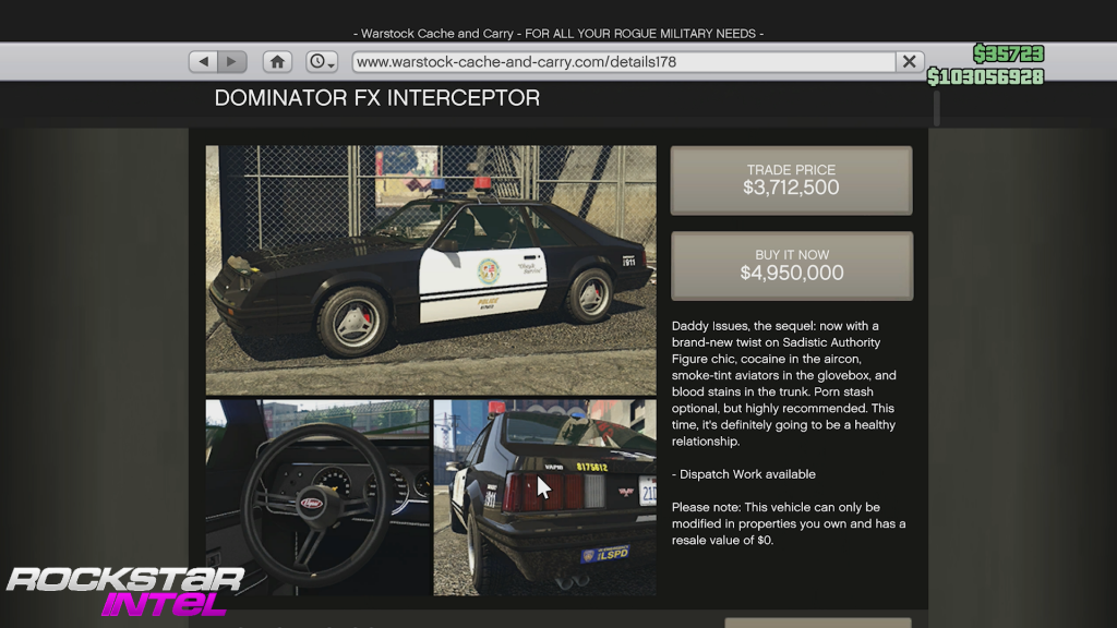 Fucking stupid that cop cars are so expensive that by the time you personalize them they basically cost as much as a Mk2 Oppressor.