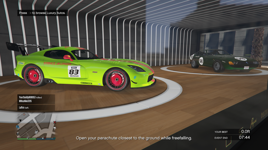 The GTA Online Luxury Autos Car Dealership located in Rockford Hills has two cars on show for purchase. The cars this week are the Bravado Banshee GTS & Grotti GT750.