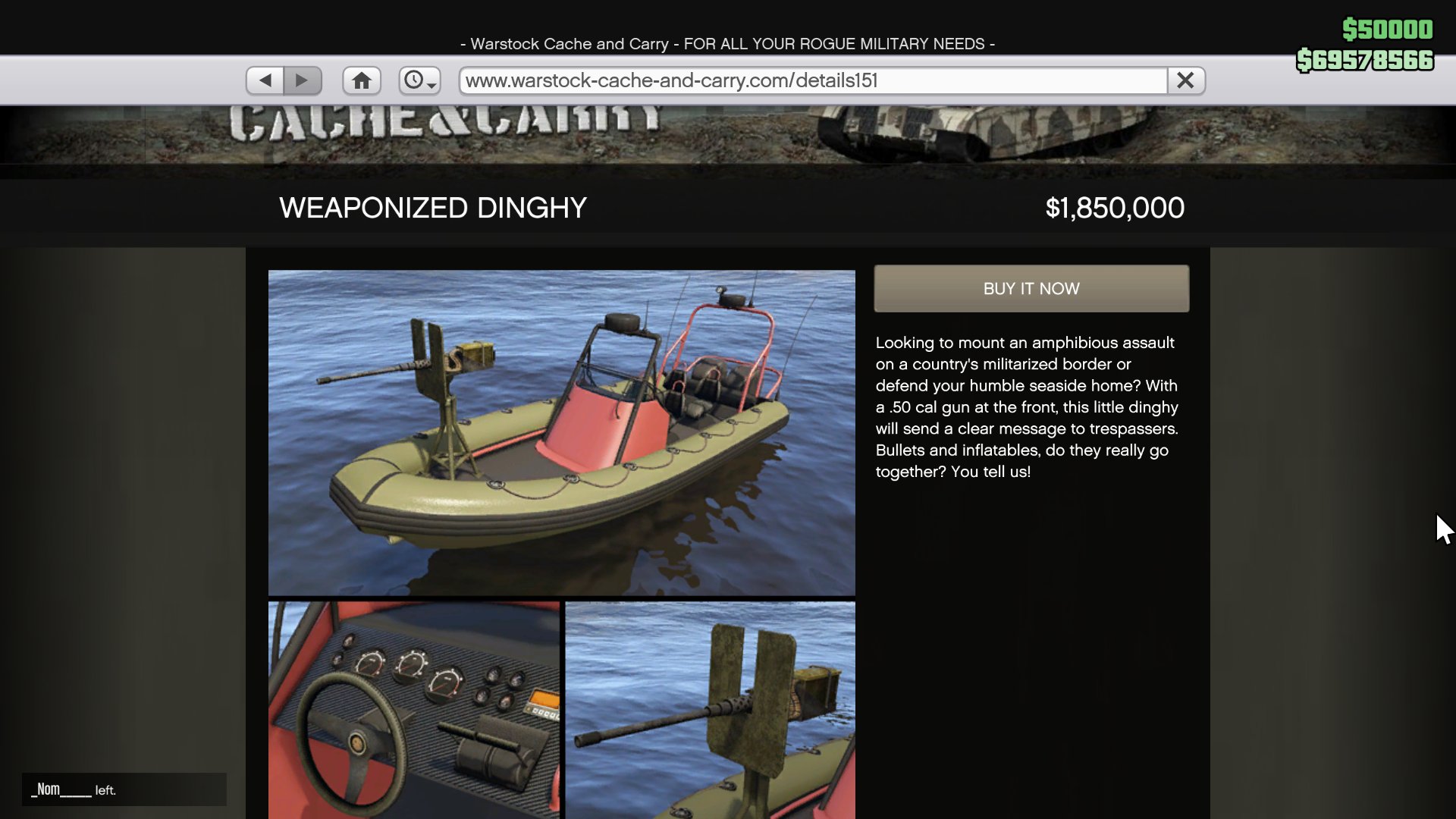 As of today, the Weaponized Dinghy is now available to purchase in Grand Theft Auto Online. It’ll set you back $1,850,000. The overpriced blow-up boat is available from Warstock Cache and Carry.