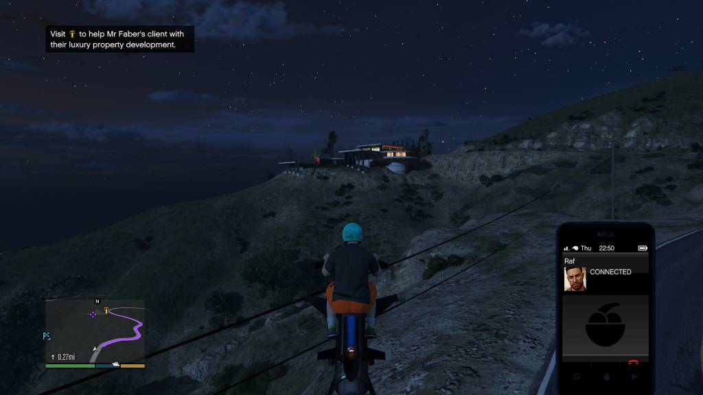 Once you’ve connected to it, drive off to the new destination on your mini-map. You’ll have to fend off attackers in cars in your way up to the Vinewood Hills construction site. The mission will be completed once you have made it to the destination.