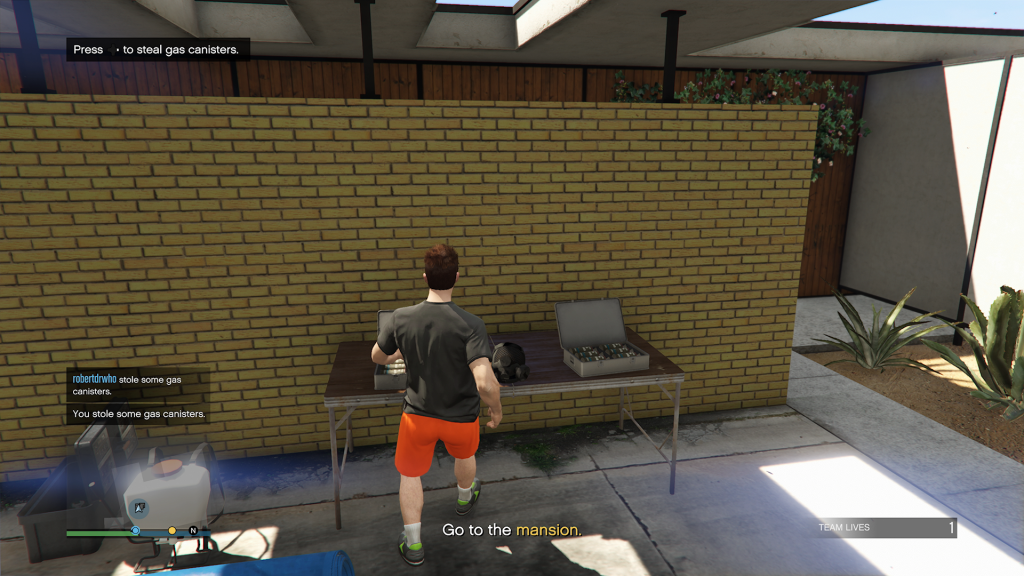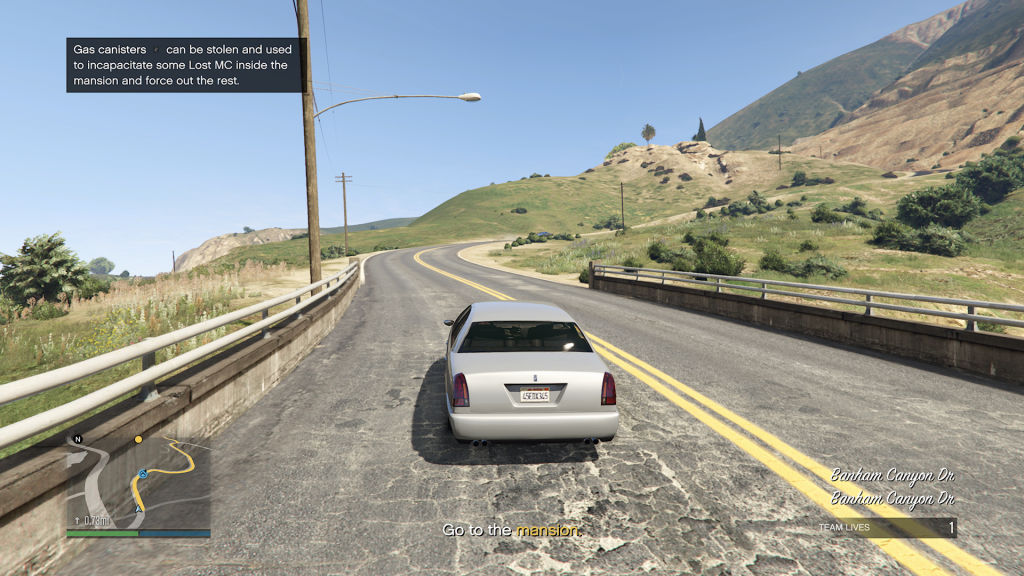 Upon starting, you’ll begin at Chumash Plaza and be tasked with travelling to Devin’s mansion. Halfway there, you can pick up gas canisters from a side road. Take them with you before getting to the house.