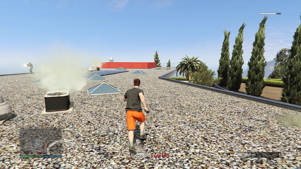 Now you’re at the mansion you need to take out the Lost MC members both outside and inside. You can choose to take them out silently or by going loud with firearms. The gas canisters can be used by visiting the aircon vents found on the roof. Do not equip a firearm and sneak onto the roof using the scaffolding to use the gas. You need to take out all of the enemies and then leave the area to complete the mission.