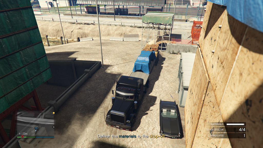 As the mission starts, Raf will ask you to visit the Mile High Club construction site. He jokes about how long it has taken to build and you objective is to steal building materials from it. Much like the previous, you can attempt to be stealthy and or go guns blazing. You need to find a lorry cab and wagon plus you can find 4 tools for extra cash.