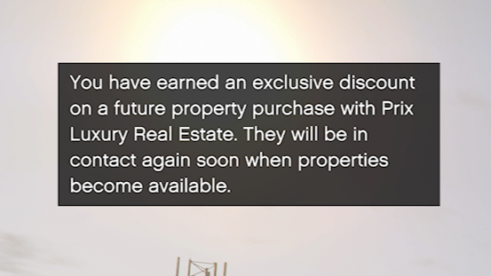 When this third and final mission has been completed, you’ll be given a notification to say you have unlocked a discount on mansions that will be coming next month in GTA Online. More details on the discount below