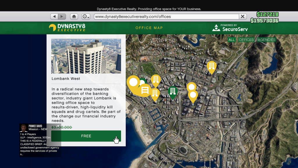 This bonus comes as part of the current Event Week which began on Thursday November 13th and runs through Wednesday November 19th. Only a specific office is free: the Lombank West Executive Office. Whilst you can only have one Executive Office, if you already have an office you can claim some money back.