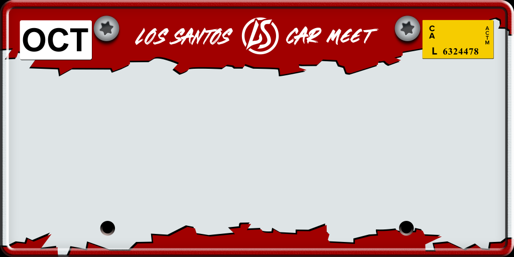 The Los Santos Car Meet plate is the latest claimable option. It is a mix of red and white and can be viewed in the image below.