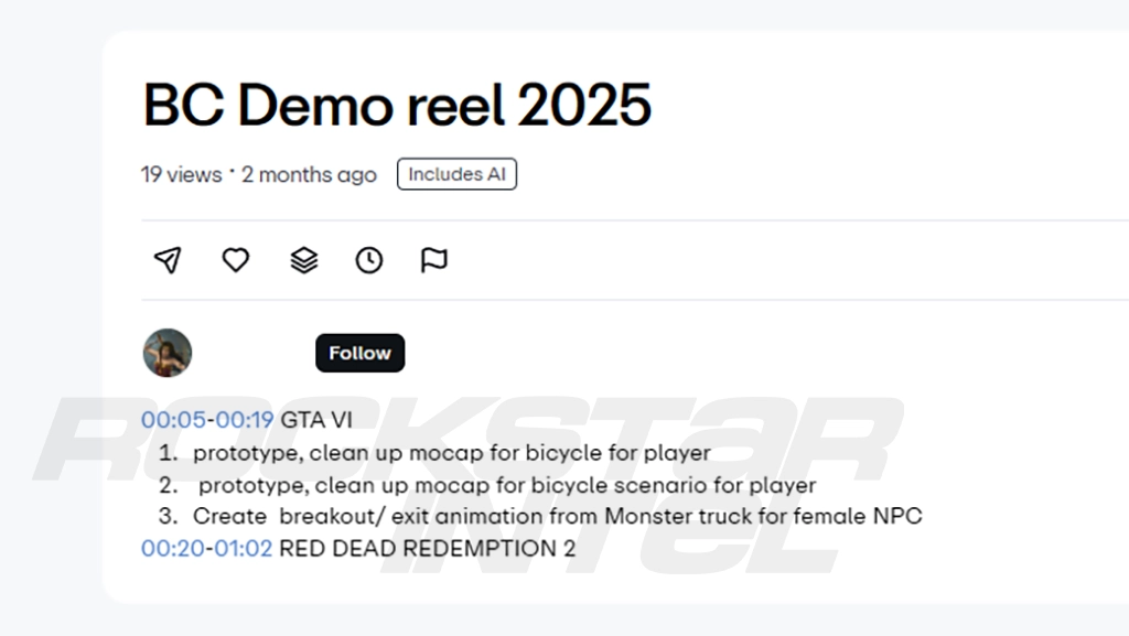 The pre-release animation work by a long time Rockstar Games employee was first spotted by Reddit user throwaway-sadkid8012. A video on Vimeo titled BC Demo Reel 2025 shows in-development footage of GTA VI along with a bunch of clips from Red Dead Redemption 2, Max Payne 3 and more. The animator has worked on all of those Rockstar Games titles plus Bully, The Warriors, GTA IV and more. The video was posted two months ago but has only just been found.