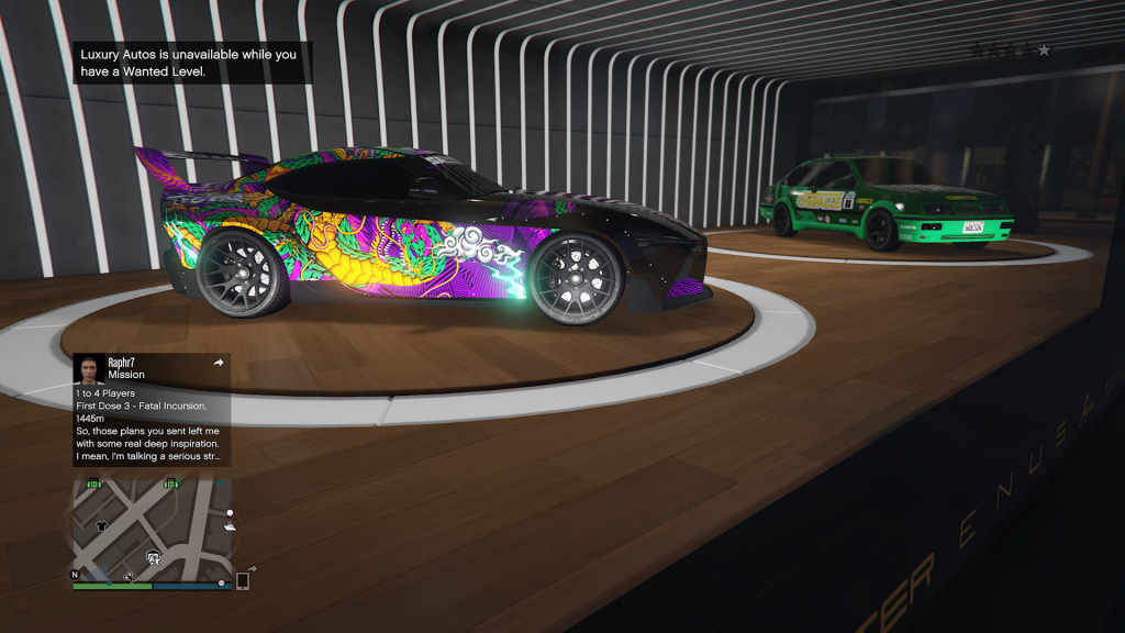 The GTA Online Luxury Autos Car Dealership located in Rockford Hills has two cars on show for purchase. The cars this week are the Dinka LSCM Jester RR & Vapid Uranus LozSpeed.