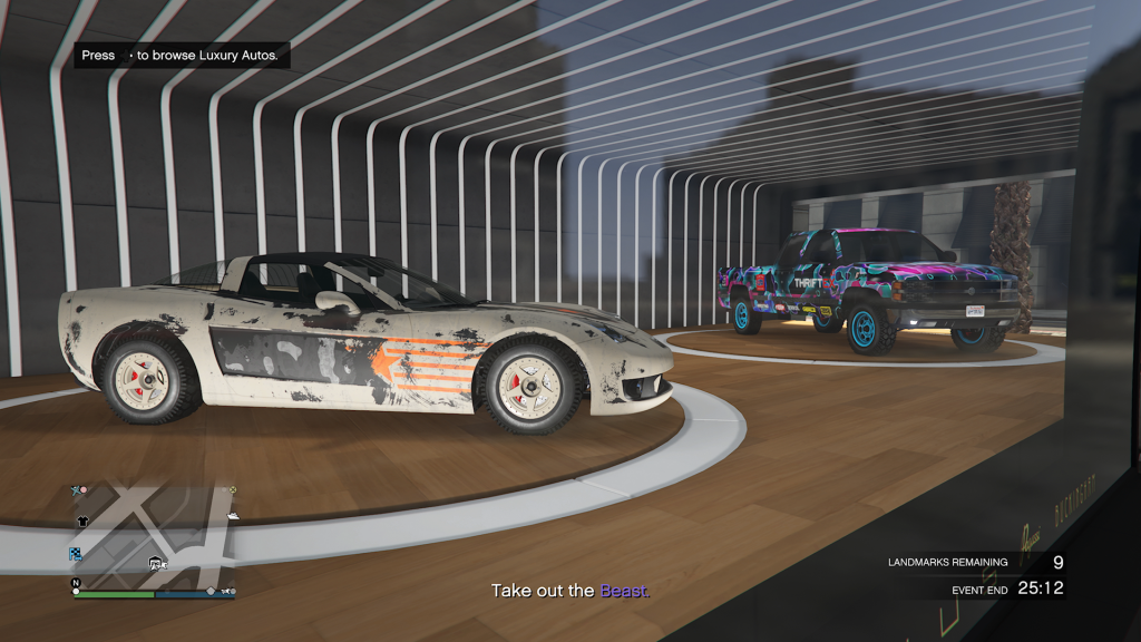 The GTA Online Luxury Autos Car Dealership located in Rockford Hills has two cars on show for purchase. The cars this week are the Declasse Yosemite 1500 & Invetero Coquette D5.