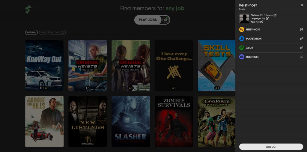 Heist.Host is a free web-based tool that simply lets you squad up to do all kinds of GTA Online jobs and removing the frustration of randomised matchmaking in-game. For example, want a group for The Criminal Mastermind Challenge? It has its own matchmaking pool.