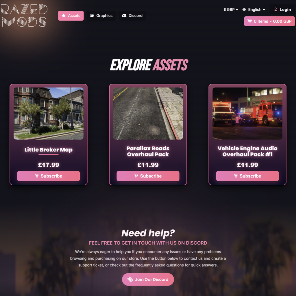 These mods have also been designed to be “lightweight” and “optimised” for performance on a range of PC hardware. Much like other FiveM shops, Razed Mods is ran through Tebex. It also comes with the Cfx.re encryption and other security.