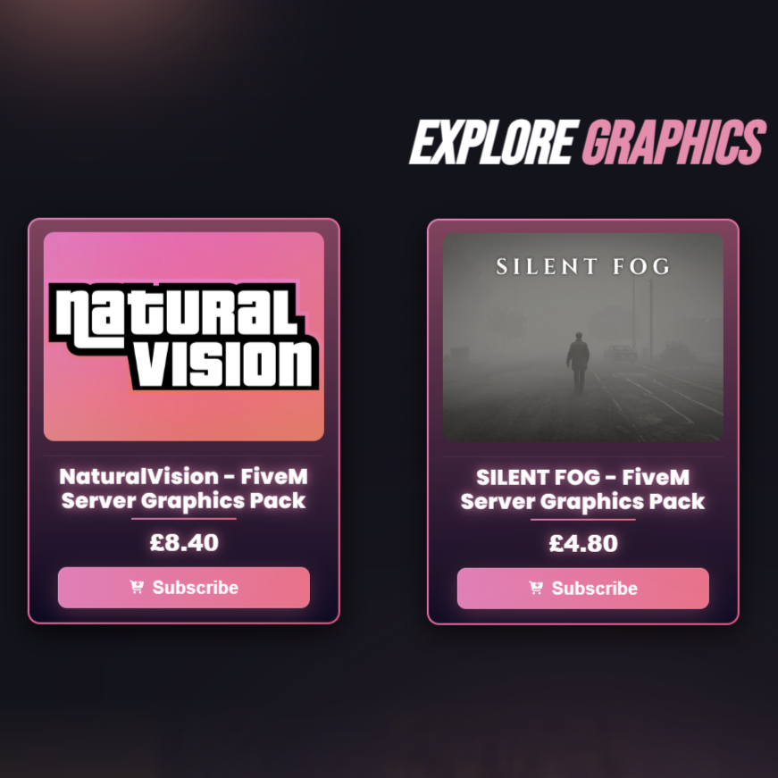 At the time of writing, there are two categories on the store: Assets and Graphics. Currently, there are 3 assets: the Little Broker Map, Parallax Roads Overhaul Pack and Vehicle Engine Audio Overhaul Pack #1. As for graphics, there is the NaturalVision and SILENT FOG FiveM Server Graphics Packs.